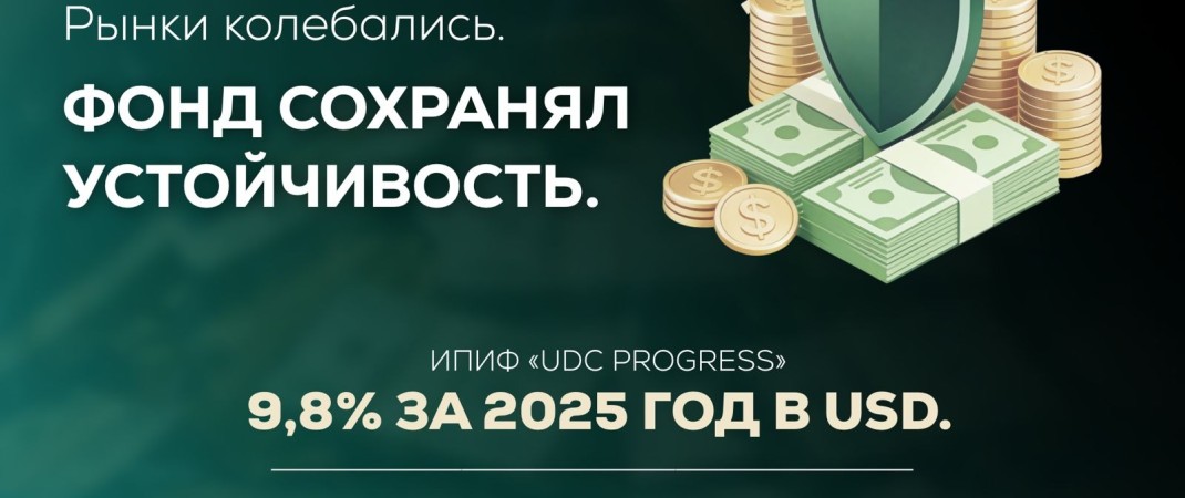 Несмотря на рыночные колебания, паевой инвестиционный фонд "UDC Progress" завершил 2025 год с доходностью 9,8%, практически достигнув целевого ориентира в 10% годовых при сохранении разумного уровня риска.